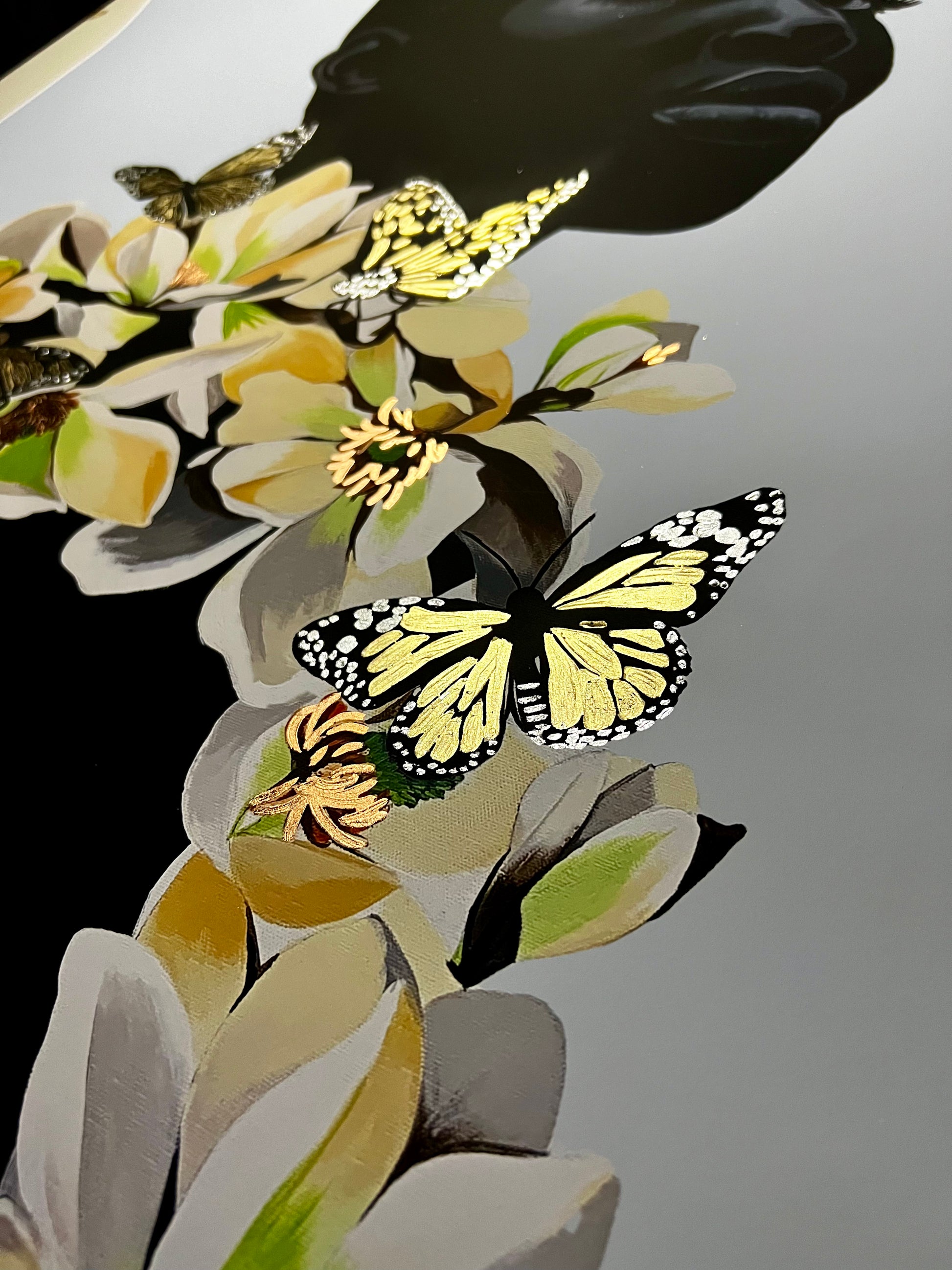 • Hand Embellished Butterflies In Gold And Silver Metal Leaf